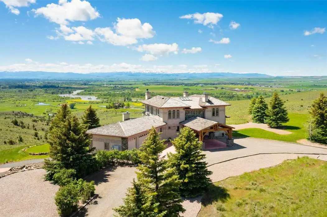 Bridger Villa just might be your new home in paradise. This palatial mountain mansion includes luxury features like Schonbek crystal chandeliers, marble and glass tile, triple-pane windows, crystal doorknobs, and a fireproof exterior. Awaken to sunrises that bathe the Bridger range and valley in pastel pinks and oranges and watch for wildlife from one of the many windows—a herd of 300 elk frequent the property, as well as foxes, deer, moose, and bears!